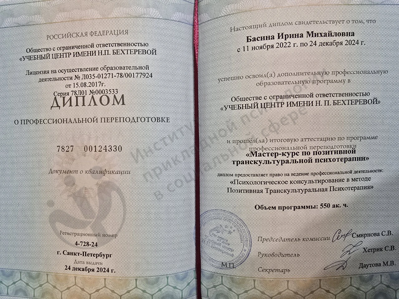 Образовательный Центр «Психотерапия» (УЦ им. Н.П. Бехтеревой), Санкт-Петербург, 2022 г. Базовый курс по Позитивной психотерапии, 200 ч.